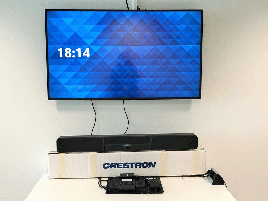 - Une Appliance intégrant un NUC Intel (Windows 10), une application propriétaire Creston et barre son intégrant micro, camera et haut-parleurs