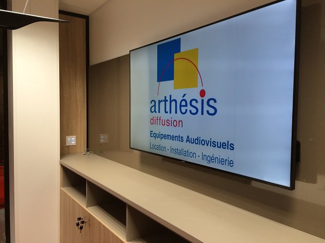 Et toujours notre rôle de conseil pour procéder aux meilleurs choix technologiques : vidéoprojecteur ou moniteur grand format dans chaque salle, audio numérique à très niveau d’intelligibilité dans les salles de visioconférence et dans la salle du conseil, affichage dynamique sur écrans plats dans les parties communes.