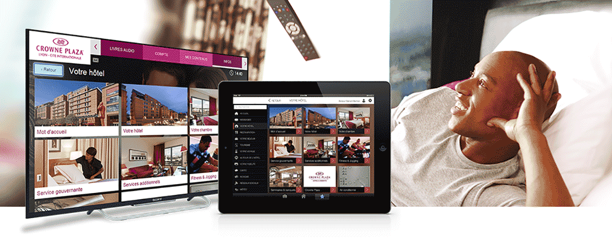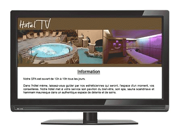 Arthésis vous accompagne à chaque étape de votre projet, met à votre disposition son expertise et son propre studio de création. Vous possédez ainsi une vraie chaîne interne entièrement à l’image de votre établissement, les pages d’accueil sur le téléviseur sont conformes à votre charte graphique, vos vidéos de présentation, vos photos, vos animations publicitaires peuvent être aussi bien réalisées par vous que par nos soins.