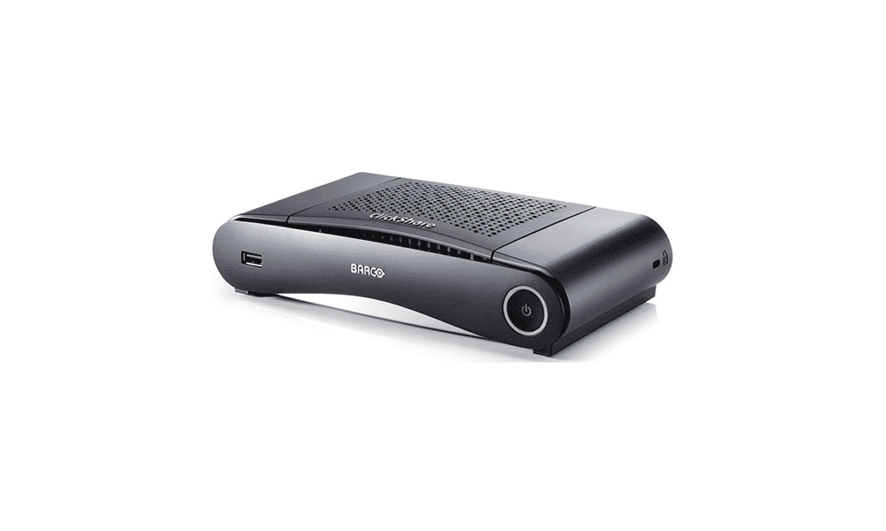 Depuis quelques années Barco est également devenue leader dans le segment des systèmes de présentation sans fil. Précurseur avec le système Clickshare, Barco décline aujourd’hui le Clickshare en 5 références spécialement conçues pour les petits espaces collaboratifs (CS-100 et CS-100 Huddle), les salles de réunion (CS-200 et CS-200+) et les salles de conférence (CSE-800).