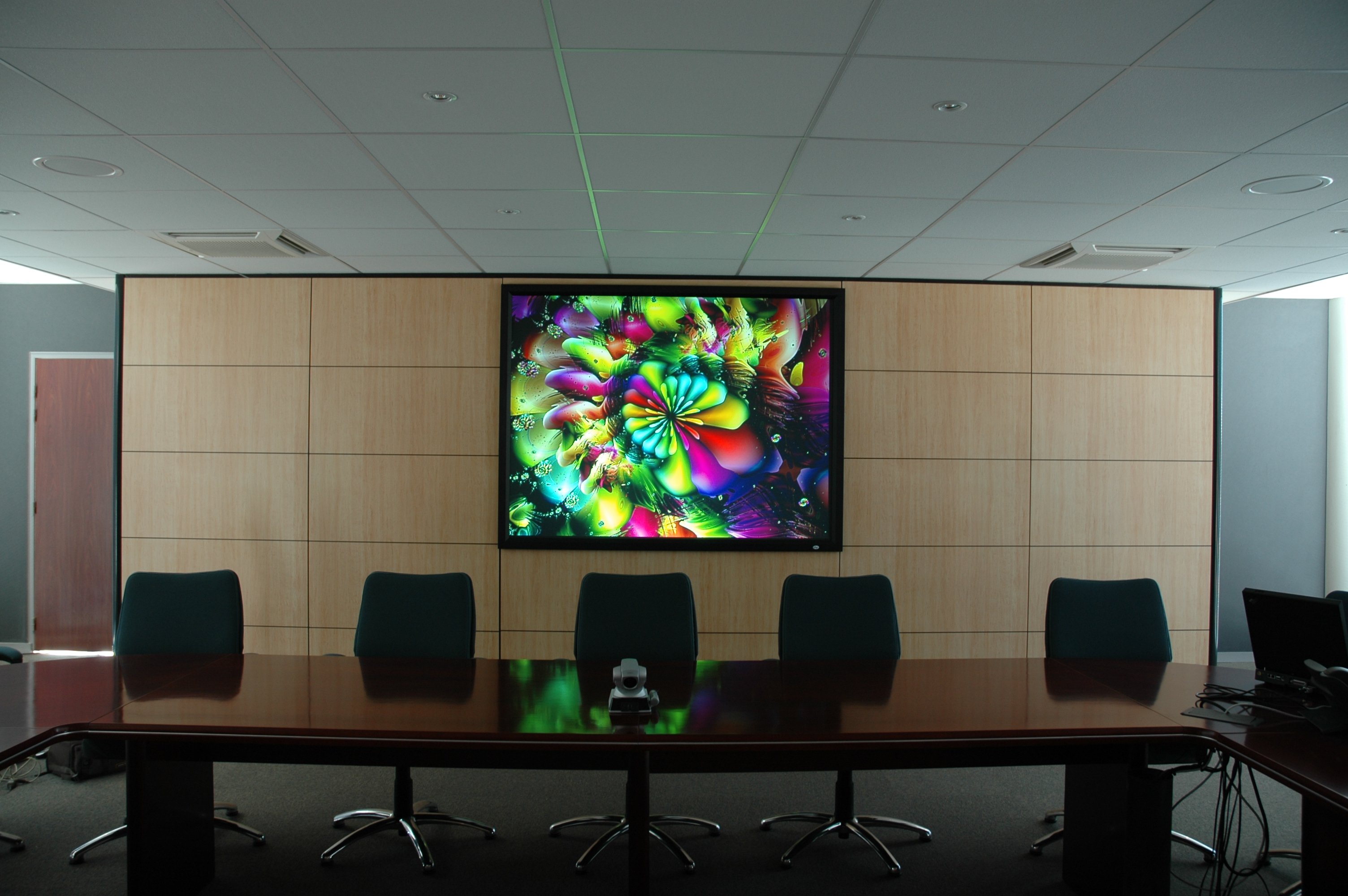 L’avantage consiste à faire disparaître le vidéoprojecteur dans un local technique prévu à cet effet sans rien perdre ni de la luminosité ni de la netteté de l’image grâce aux nouvelles caractéristiques de ces toiles ou de ces dalles translucides.