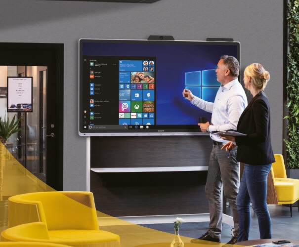 Outre ses caractéristiques de premier ordre, le moniteur de SHARP vous offre une résolution Ultra HD (3840×2160), une technologie tactile capacitif 10 points haut de gamme, des stylets interactifs mais également l’ensemble des outils qui permettent de tenir vos réunions en webconférence : caméra 4K grand angle et microphone intégré d’une portée de 6 mètres.