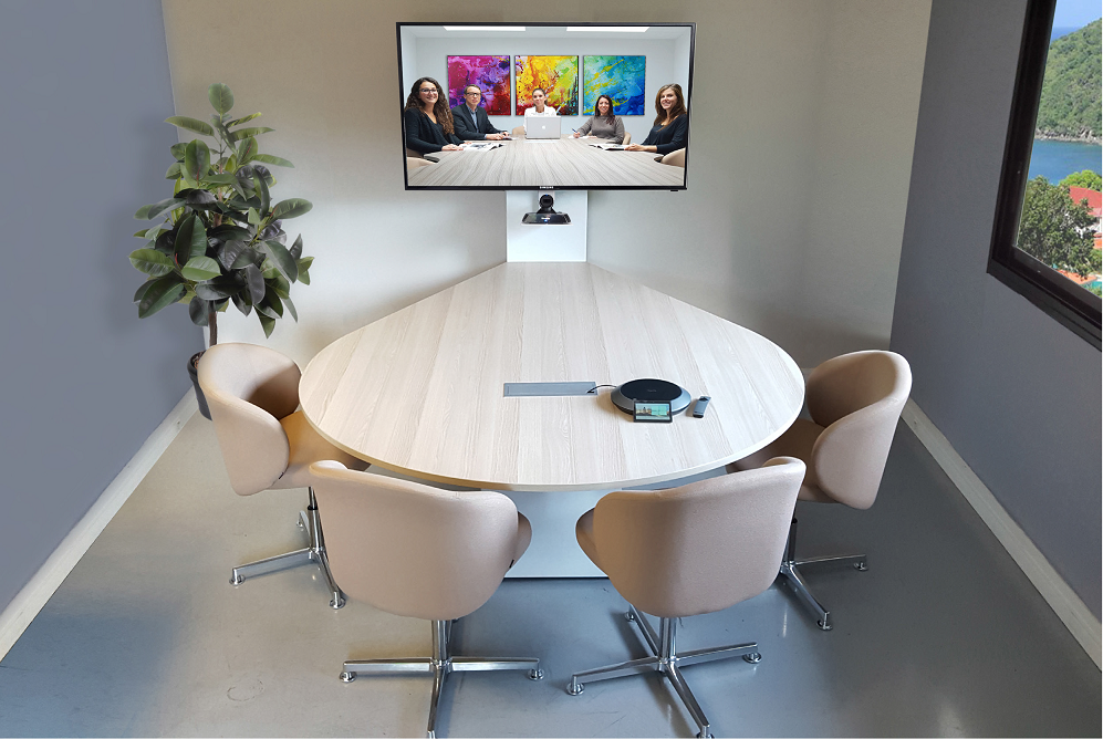 Table de réunion tout-en-un ergonomique dédiées à la visioconférence et aux présentations
