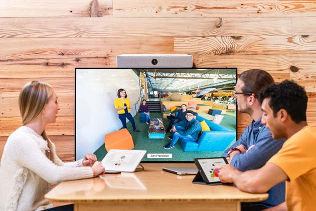 Le « Room kit » inclut une caméra, le codec, les hauts-parleurs et le micro intégré dans un seul écran, ainsi que le câblage nécessaire. Cet ensemble sera parfait pour des salles pouvant accueillir jusqu’à 7 personnes.